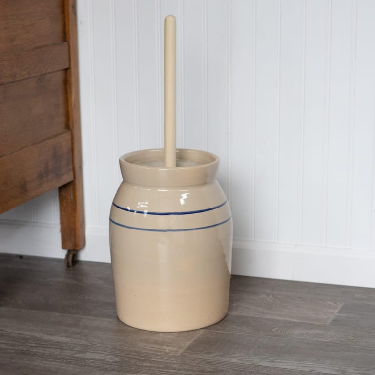 The Martinez Pottery Butter Churn 3 Gallon delivers authentic old-fashioned butter making at home. Crafted from durable stoneware with a smooth wooden dasher, it’s fully functional and doubles as stunning farmhouse decor. Handmade in the USA, lead-free, and built to last, it’s perfect for homesteaders, traditional cooking lovers, or anyone wanting fresh homemade butter with a rustic touch.