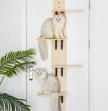 The GHRERTX Door Hanging Cat Shelf turns any standard door into a multi-level cat playground. With four sturdy tiers covered in soft, breathable fabric, it offers cozy spots for lounging, observing, and playing. Its reinforced metal frame ensures safety and stability for cats of all ages. Installation is effortless—no tools required—and the non-slip padding protects doors from scratches. Perfect for small spaces, this hanging cat shelf stimulates activity, prevents boredom, and brings joy to both cats and owners. Comes with removable mats and includes cat toys for endless fun.