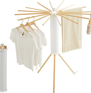 Simplify your laundry routine with the JOOM Tripod Clothes Drying Rack! This portable and foldable wooden rack offers a stable, space-saving solution for drying clothes anywhere — from the balcony to the bedroom. Its tripod design ensures balance, while the foldable frame allows easy storage when not in use. Stylish, durable, and practical — the perfect blend of functionality and modern home design!