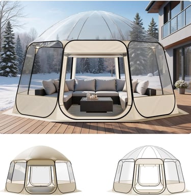 Enjoy outdoor comfort with this VEVOR clear pop-up bubble tent featuring a 540° panoramic view and waterproof TPU panels. Quick to set up with strong fiberglass support, floor mat, and rain cover included. Perfect for backyard gatherings, sports events, stargazing, patio lounging, or winter shelter use.