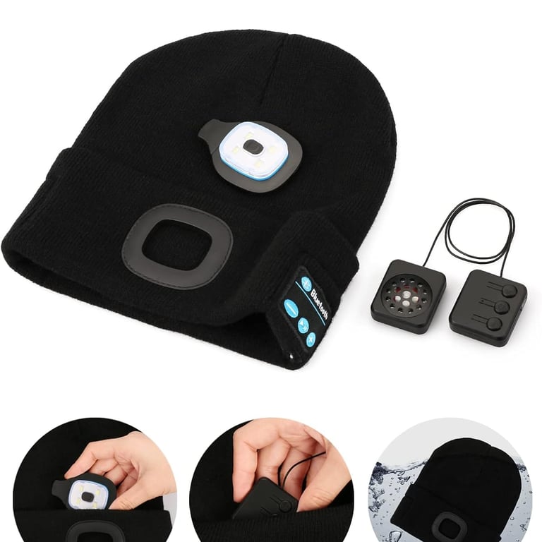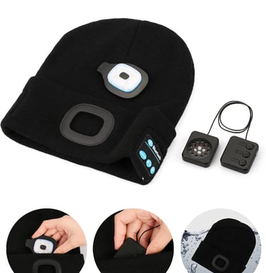 Stay warm, bright, and connected with the Wmcaps Bluetooth Beanie! This unisex hat features built-in cordless headphones and a 4-LED rechargeable flashlight — perfect for night walks, camping, or outdoor work. With its soft, comfortable fabric and USB charging, it combines music, light, and warmth in one stylish design. A practical and unique gift for men, husbands, or teens — ideal for Christmas, birthdays, or any adventure!